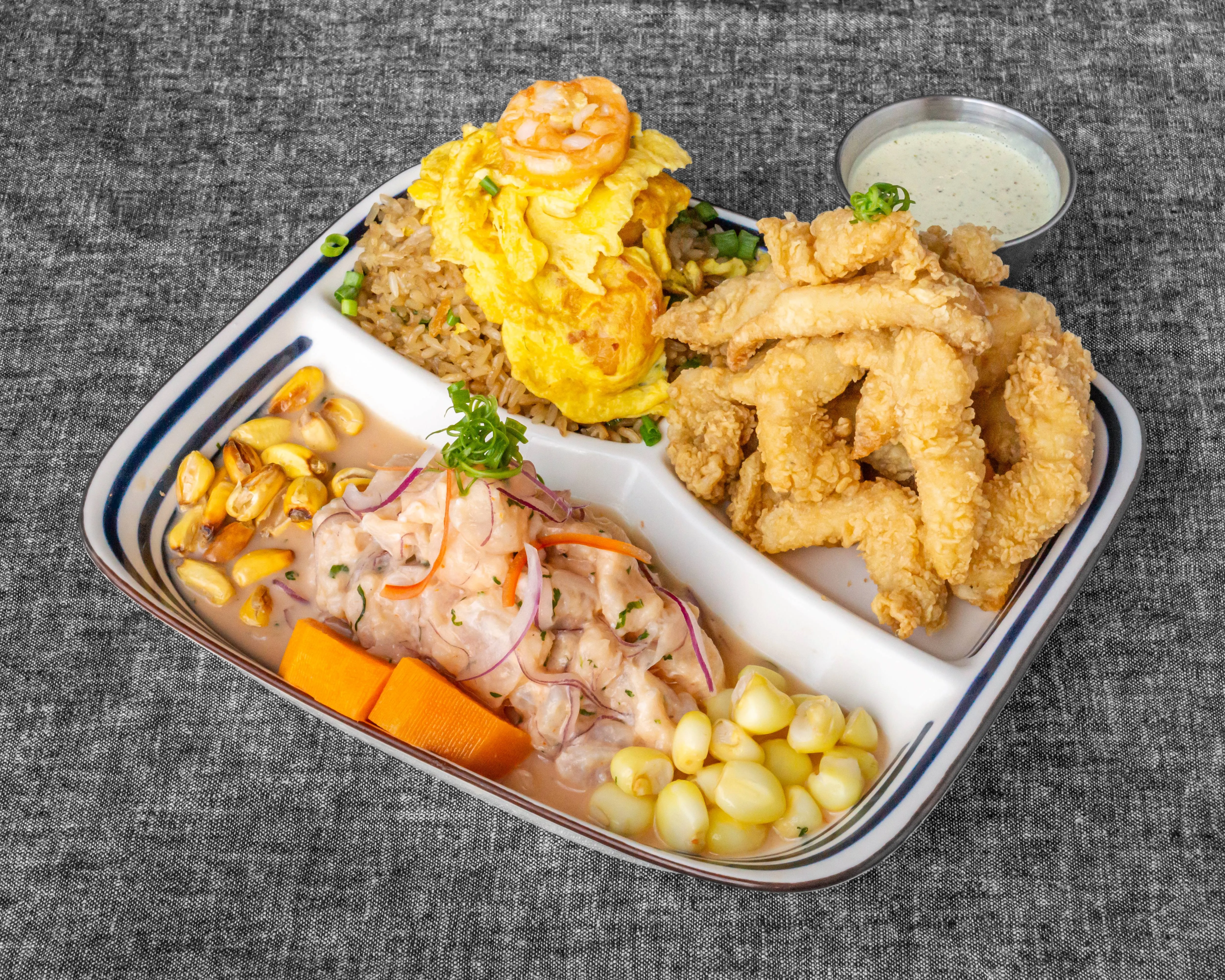 Ceviche Clasico, Chaufa De Camaron & Chicharron De Pescado