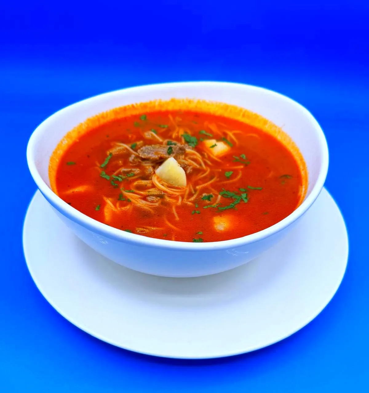A Concentrated Steak Bone Soup With Noodles And Potatoes. Dairy Free